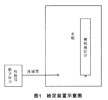 该检定装置如图1所示,包括数字压力校验仪、水箱、连通管、水箱、各种液位计接口和固定装置。