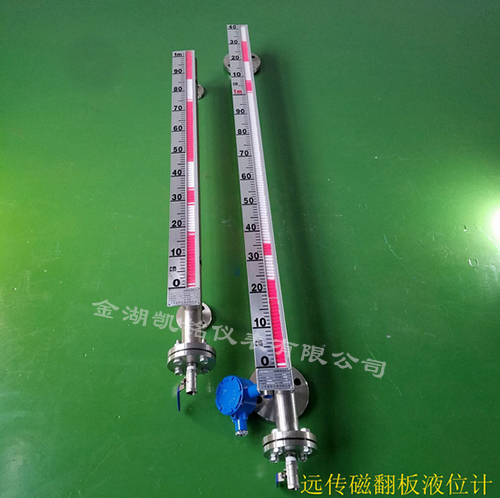液位计根据浮力原理,浮子在测量管内随液位的升降而上下移动,浮子内的永久磁钢通过磁耦合作用,驱动红、白色翻柱翻转180’液位上升时,翻柱由白色转为红色,下降时,翻柱由红色转为白色,从而实现液位的指示。
