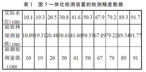 我们把图5 所示的一体化检测装置进行了水位检测实验, 其检测结果与实际水位值见表1。