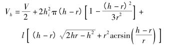 根据质量计算公式m=QV可知,需能找到不同液位H下对应的体积V,然后乘以温度修正过的液氨密度Q液氨,即得出准确的氨罐吨位。通过查阅相关资料,卧式氨罐体积V与高度H可用下式进行计算: