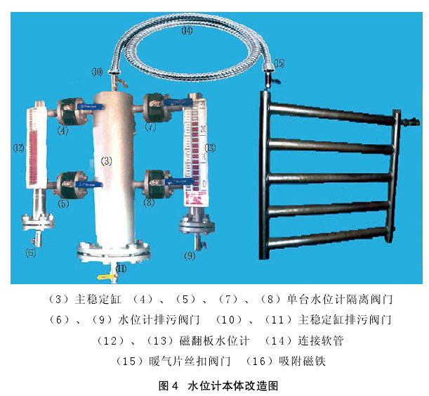 (4)水位计安装完毕后,稳定缸下侧均安装强磁铁。