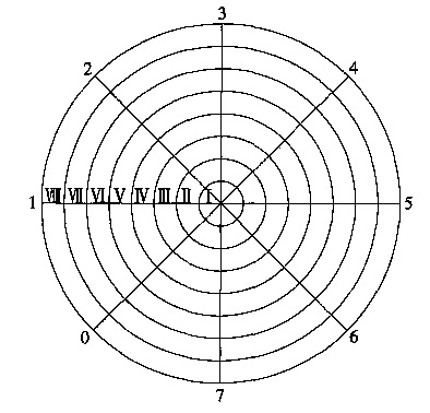 1.2.2 几何测量法根据立式金属罐容量试行检定规程,把圆锥体底圆分成M 个同心圆,根据所分圆环面积相等条件决定半径。圆锥体分为一个小圆锥和多个圆台。在每个圆心圆周测N 个点,即测N 个点到罐底中心的高度。底量测量原理见图2。