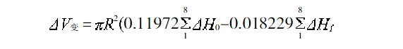 式中:K=M · N;R 为罐底的半径;H0 为罐底中心高度;HI 为圆周(I)上测点高度;HM-1 为圆周(M-1) 上测点高度。M 和N 由精度确定。通常取M=N=8,则此时底部变形量为: