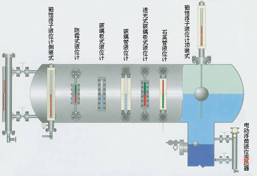 液位计根据浮力原理,浮子在测量管内随液位的升降而上下移动,浮子内的永久磁钢通过磁耦合作用,驱动红、白色翻柱翻转180’液位上升时,翻柱由白色转为红色,下降时,翻柱由红色转为白色,从而实现液位的指示。