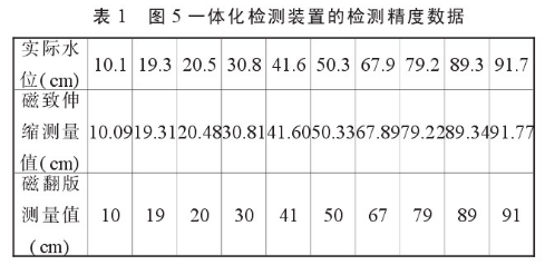 我们把图5所示的一体化检测装置进行了水位检测实验,其检测结果与实际水位值见表1。
