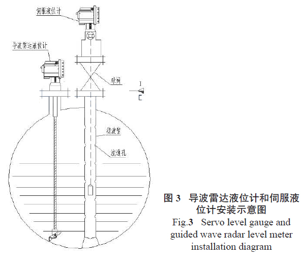 图3中,左侧仪表为缆式导波雷达液位计的安装示意图。