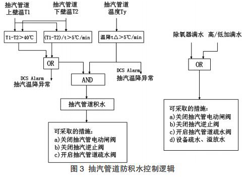 对于抽气管道的积水情况, 仍采用上下壁温差法自动检测,控制逻辑与策略如图 3 所示。
