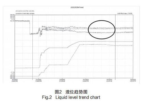 方家山核电机组自商运以来,MSR 疏水箱内多次发生液位高漂的问题,并且还存在表计之间偏差较大的问题,发生一支液位计与其他两支相比偏差较大(大约 10%)的情况(见图 2 液位趋势图),主要问题存在于探杆和表头。