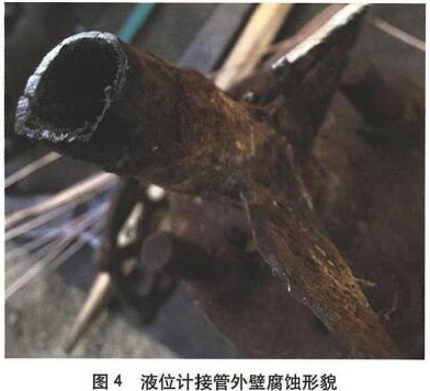 分离罐液位计接管先于罐体腐蚀泄漏失效是由于管壁较薄加之外表面防腐保温不完整导致雨水侵人常年腐蚀所致。对此应引起设计、制造、使用及检验等相关各方为戒。