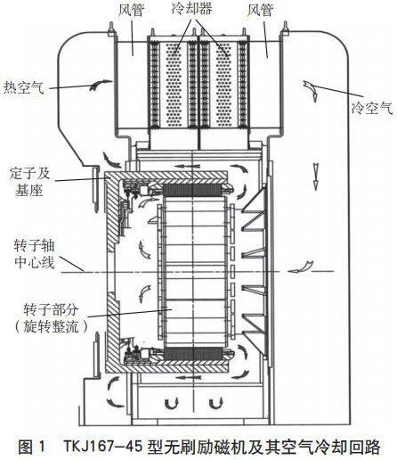 大型核电机组的励磁机一般采用循环空气冷却,冷却空气在冷却器和励磁机之间进行强迫循环,在经过励磁机和冷却器时发生热交换,将励磁机正常运行过程中产生的热量*终传递给冷却器内部铜管里的冷却水。