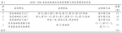 在试验成功的基础上,苏里格气田对 ACD-1DL 油水分析液位计进行了全面推广,截止到 2014年 11 月底,共在 87 座集气站应用 190 台,各单位应用情况统计见表 1 。
