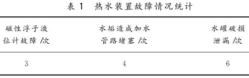 通过多年的使用,总结出热水装置在生产使用过程中存在以下问题。
