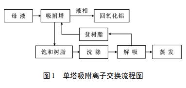 目前我公司采用的就是离子交换法单塔吸附,从含液位计的拜耳工艺溶液中回收液位计的工艺流程。每个周期都是由氧化铝来的含液位计母液,经母液泵进入单个吸附塔内,经塔内树脂吸附后,吸附尾液由尾液泵返回氧化铝。吸附后的饱和树脂经洗涤后进入解吸流程,解吸后的贫树脂回到吸附塔再次吸附,解吸液进入后续流程。然而单塔吸附在生产实践当中暴露许多问题。