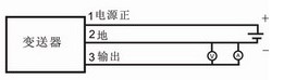 2、三线制0~5V,0.5~4.5V,0~10V,0~10mA,0~20mA等输出变送器电气连接图: