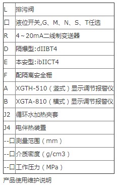 3.对液体进行清洗或更换浮子时,打开排污法兰,在装入磁性浮子时,应注意重端带磁性一端向上,不能倒装!