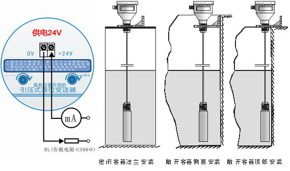 投入式液位变送器一般采用扩散硅或陶瓷敏感元件的压阻效应,将静压转成电信号。经过温度补偿和线性校正。转换成 4-20mADC 标准电流信号输出。投入式液位变送器的传感器部分可直接投入到液体中,变送器部分可用法兰或支架固定,安装使用*为方便。固态结构,无可动部件,高可靠性,使用寿命长从水、油到粘度较大的糊状都可以进行高精度测量,不受被测介质起泡、沉积、电气特性的影响宽范围的温度补偿。它还具有电源反相*性保护及过载限流保护。
