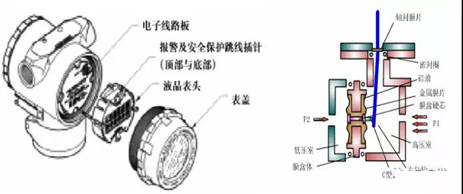 锅炉差压式液位计结构:主要部件为传感器模块、电子元件外壳、毛细管、高低压侧法兰及膜片。传感器模块包括充油传感器系统(隔离膜、充油系统和传感器)以及传感器电子元件。