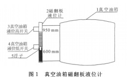 密封油真空油箱液位显示采用磁翻板液位计,设置2个微动开关(干簧管液位开关)作为液位高低报警。微动开关一个磁铁安装在一个干簧片上,浮球与磁铁相互作用,磁铁微微转动带动簧片的动作,从而使液位开关的触点断开(或闭合),实现开关状态的转变。油位正常时磁翻板显示油位为950mm。图1为密封油真空油箱液位显示。2011年4月15日机组启动之前检查,发现密封油真空油箱磁翻板600mm上磁翻板断断续续显示,950mm液位磁翻板有显示。怀疑翻板失磁,用磁铁沿着磁翻板刷一遍,翻板均能很好地翻过来;拿掉磁铁,翻板又回到600mm位置处。确认真空油箱油位在950mm处后,未做进一步处理,运行人员加强监视。