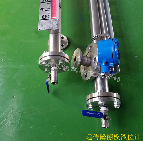 3、磁翻板液位计安装必须垂直,磁翻板液位计与容器引管间应装有球阀,便于检修和清洗;