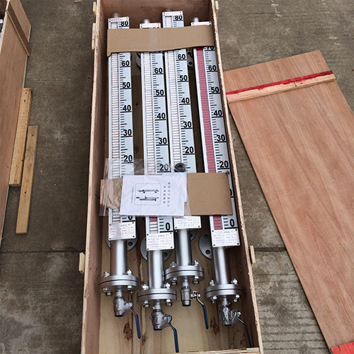液位计根据浮力原理,浮子在测量管内随液位的升降而上下移动,浮子内的永久磁钢通过磁耦合作用,驱动红、白色翻柱翻转180’液位上升时,翻柱由白色转为红色,下降时,翻柱由红色转为白色,从而实现液位的指示。