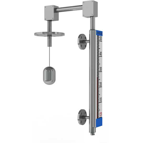 该液位计*显著特点是液体介质与指示器完全隔离,所以在任何情况下都非常安全、耐用,而且各种型号的液位计配上液位报警、控制开关,可实现液位或界位的上、下限越位报警控制或联锁;配上干簧芯片组液位变送器,可将液位、界位信号转换成二线制4-20mADC标准信号,传输给计算机、调节器、液位数显仪,实现远距离指示、检测、记录与控制,该系列液位计广泛用于:石油、化工、冶金、制药、食品、电力等各种生产过程中的液位测量。