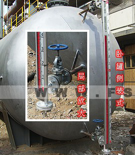 ⑴(普通型),它是由本体、浮子、面板框等部件组成。液位计与容器上下法兰连接,连接时中间加阀门,安装在一侧。它适用于在不需要保温或冷却,且介质对奥氏体不锈钢不腐蚀的场合。