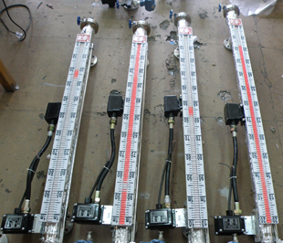 在液位计立管上由用户设定上、下限位置安装控制器,控制器内带有自保持作用的舌黄开关,利用磁性浮子随液位移动使黄片开关动作时,实现报警或限位控制。